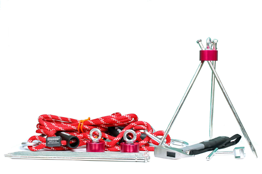 Flyties anchor, slidedown tiedowns and a hammer that all stores away for your convince and ease in the TacAero designed roll bag.